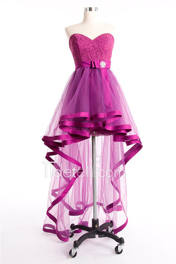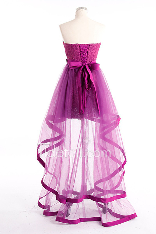 hi-lo prom dress, purple prom dress, detachable prom dress, lace prom dress, party prom dress, prom dress gown, E284