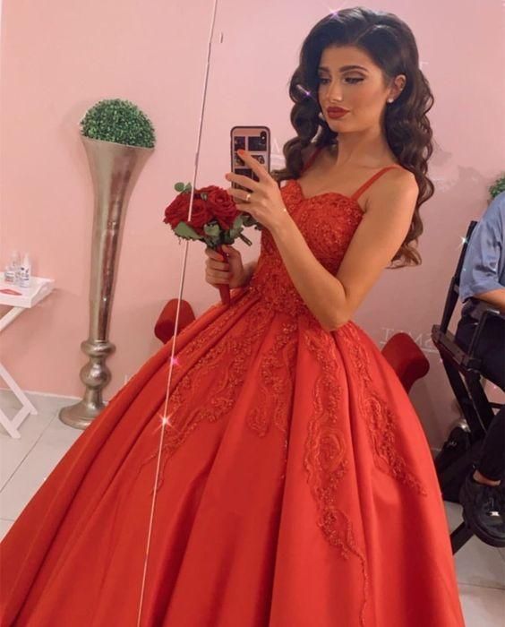 Elegant Red sweetheart ball gown satin dresses appliques beaded bridal wedding Prom gown,PD22021