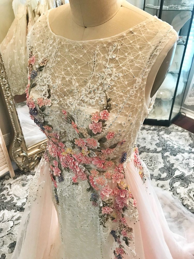 Pink Wedding Dresses Bridal Gown with Appliques Elegant Prom Dress,PD22027