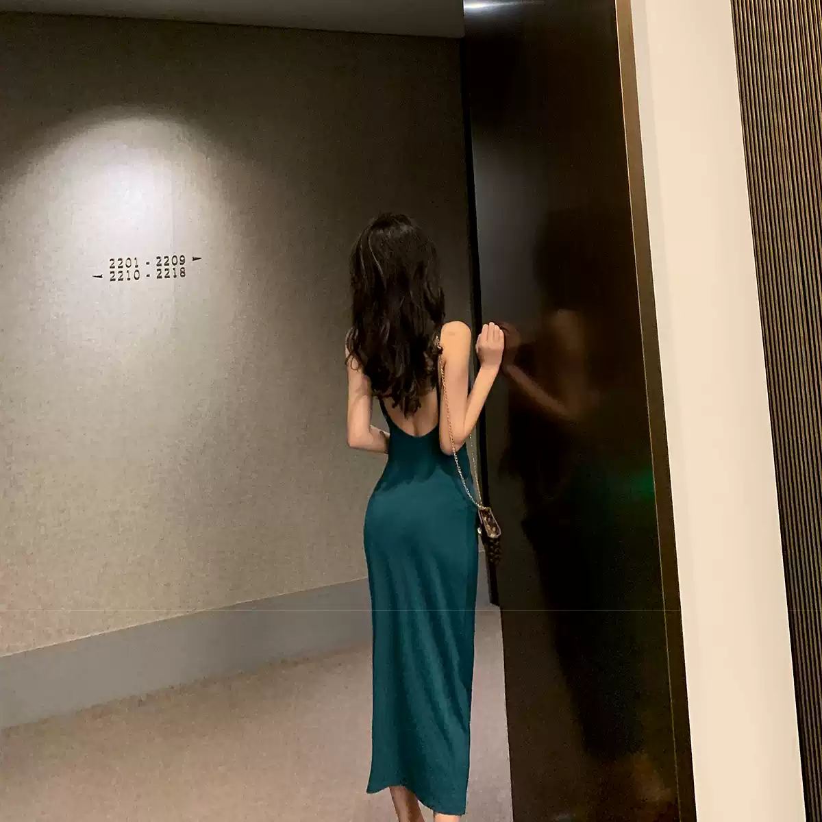 Simple Prom Dress Spaghetti Straps Prom Dress with Slit Backless Party Dress,PD22043