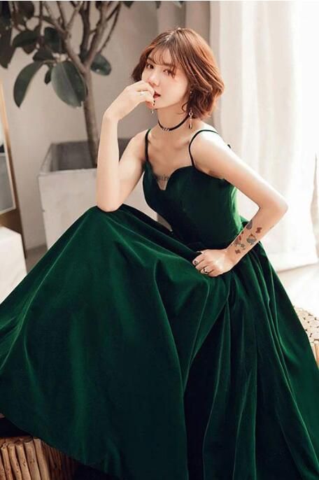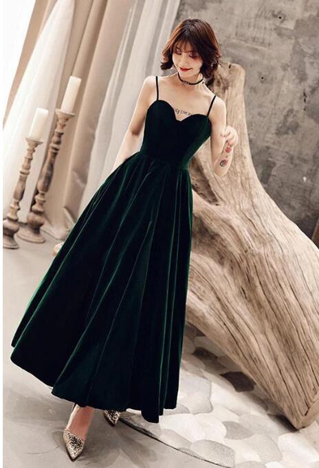 Charming Spaghetti Straps Sweetheart Sleeveless A Line Prom Dress Green Velvet Prom Dress,PD22127