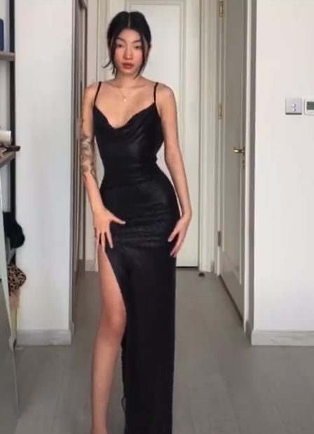 Spghetti Straps Black Long Prom Dress With High Split,PD22283