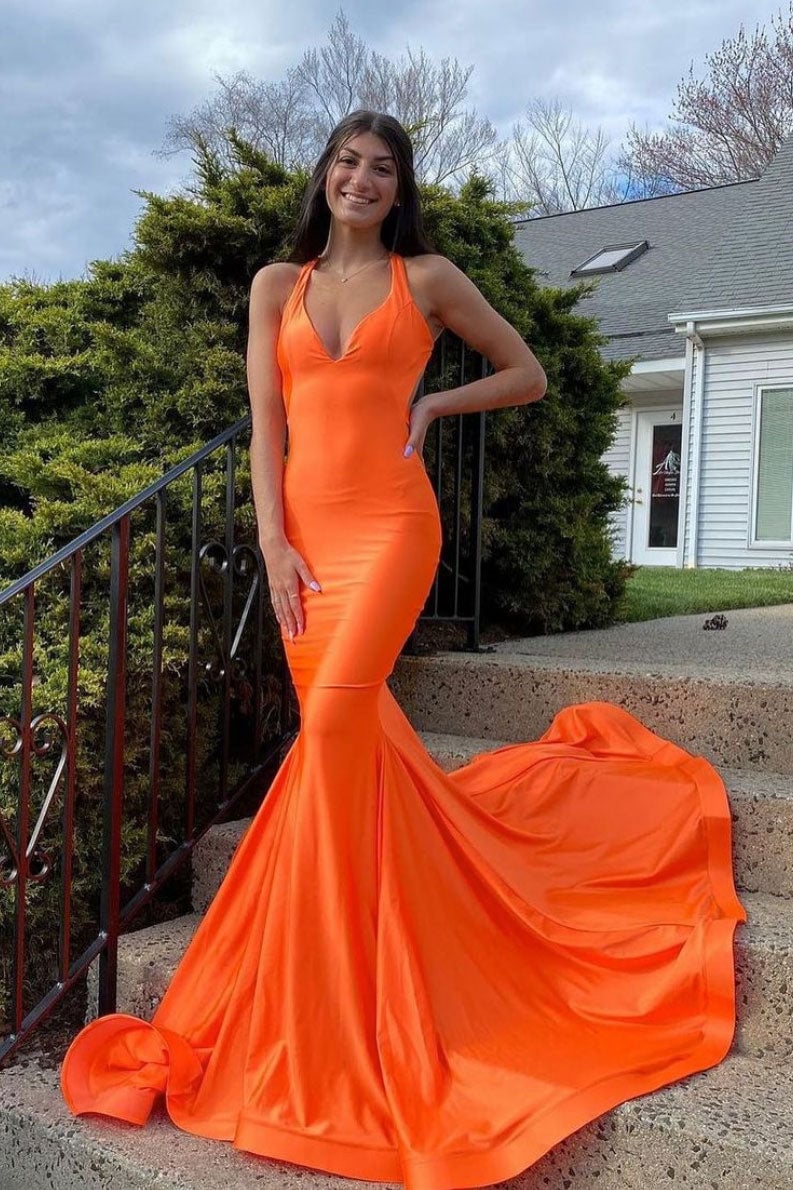 Simple Orange satin mermaid long prom dress orange evening dress,PD22758