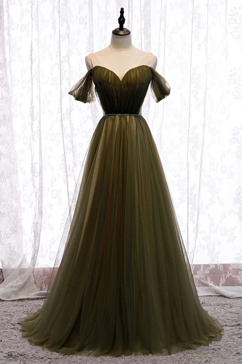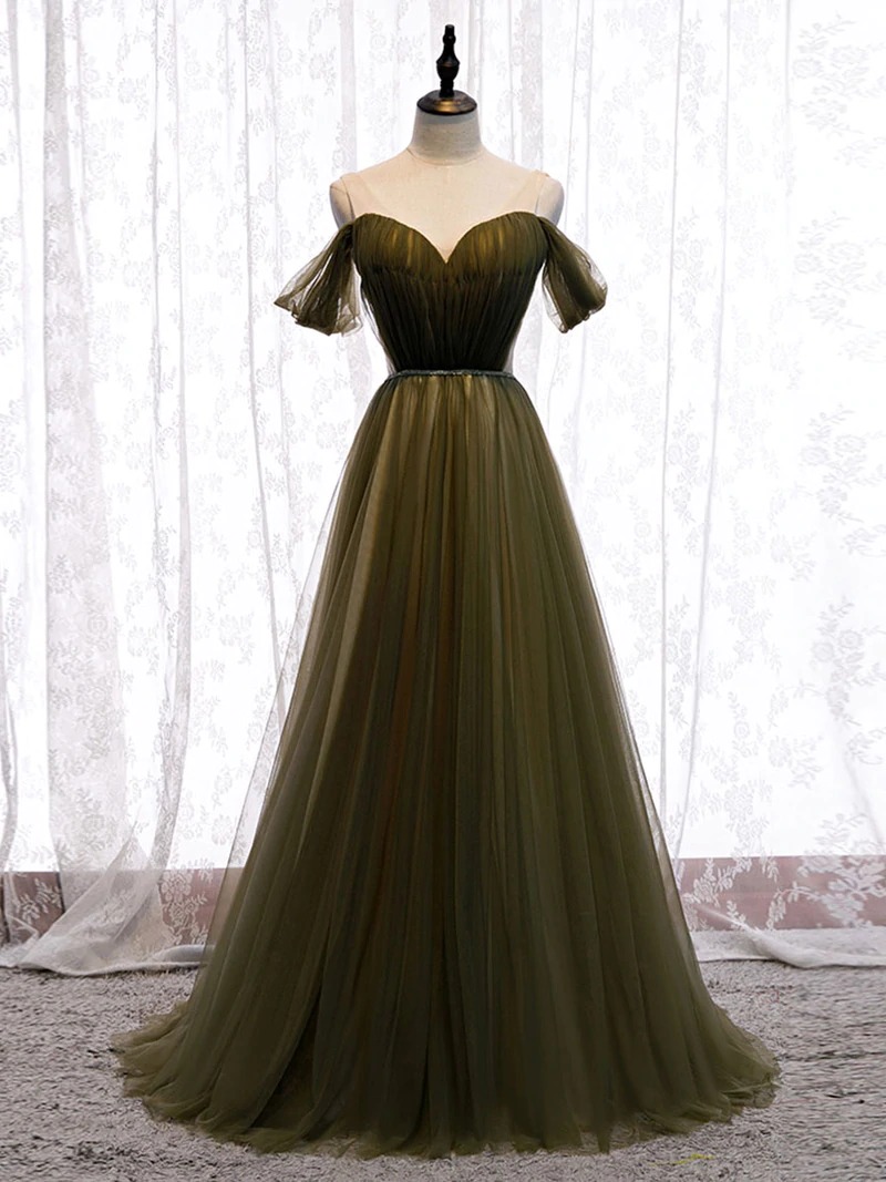 Simple green tulle long prom dress green tulle evening dress,PD22928