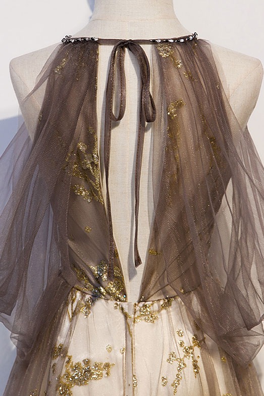 Champagne tulle lace long prom dress champagne tulle formal dress,PD221143