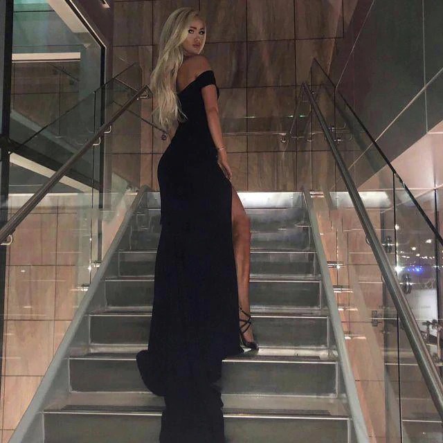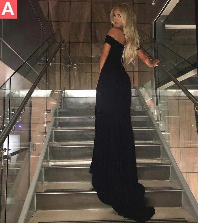 Black Charming Sheath Off Shoulder Sweetheart Side Slit Long Prom Dresses,PD221269