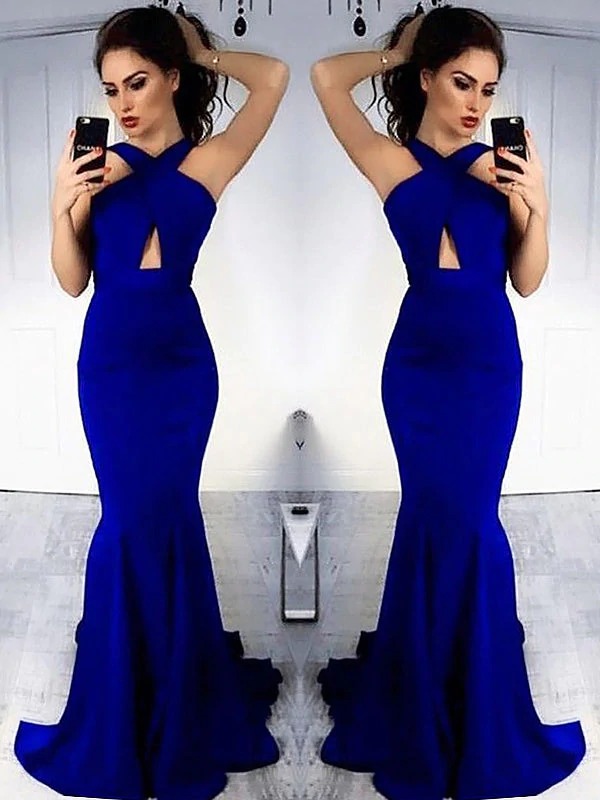 Sexy Royal Blue Mermaid Backless Criss Cross Long Prom Dresses,PD221408