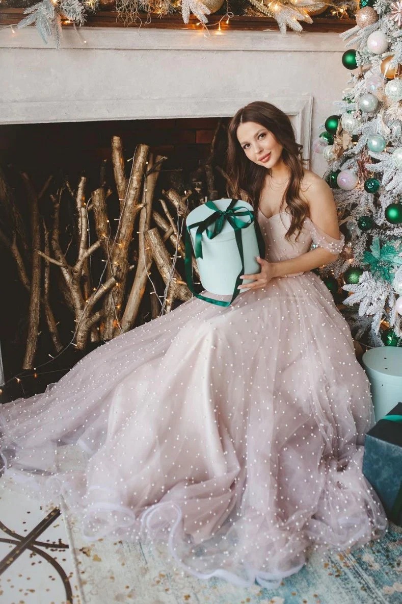 Light pink sweetheart tulle beads long prom dress pink formal dress,PD221544