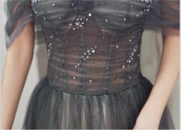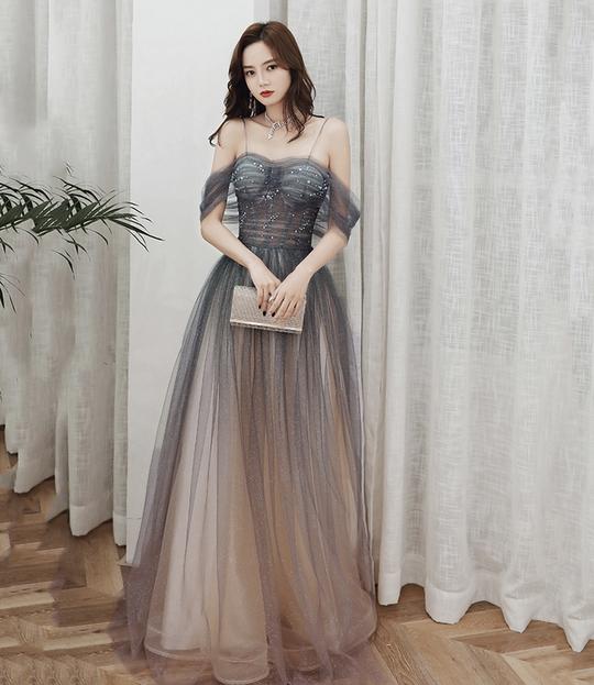 CUTE TULLE SEQUINS LONG PROM DRESS EVENING GOWN,PD22029