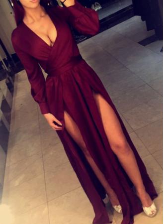 Dark Red Slit Long Sleeves Evening Dress, Pretty Formal Dress,PD22232