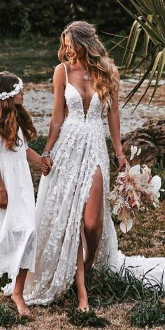 Sexy Appliques Prom Dresses Deep V-neck Bridal Dresses Spaghetti Straps Wedding Gown,PD22336
