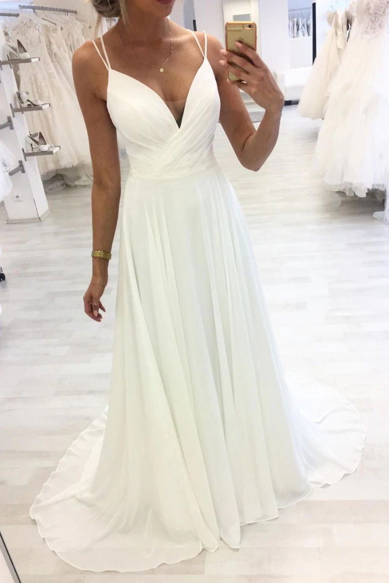 Simple white chiffon long prom dress white bridesmaid dress,PD221032