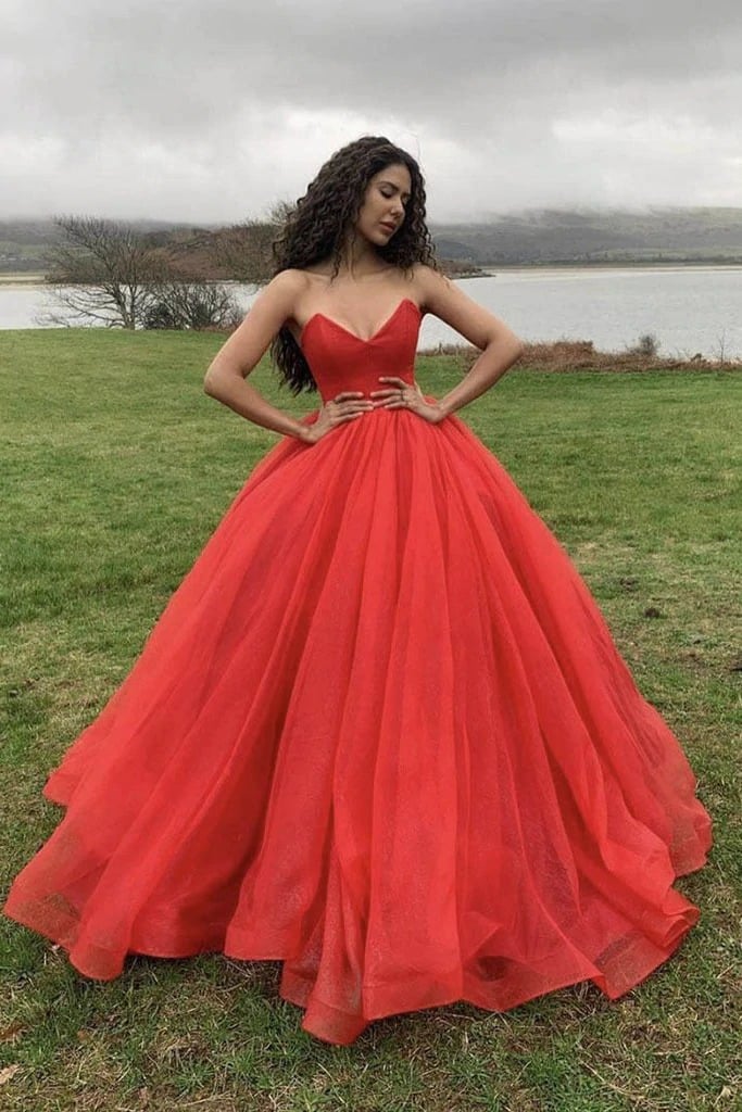 Red sweetheart tulle long prom dress red formal dress,PD221073