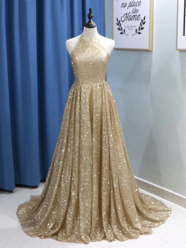 A Line Red Halter Shiny Long Prom Dresses,PD221167