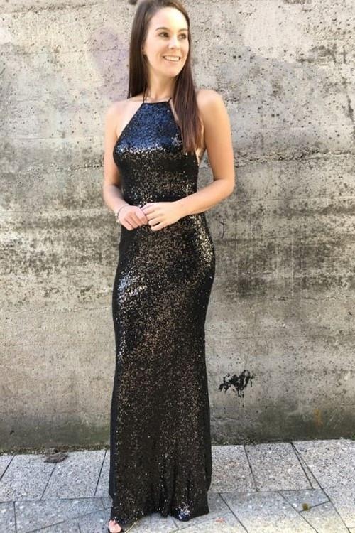 Black Sheath Sequence Lace Up Back Criss Cross Long Prom Dresses,PD221276