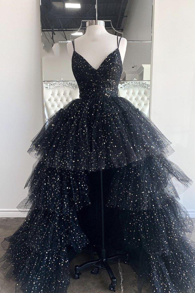 White v neck tulle high low prom dress white tulle formal dress,PD22712
