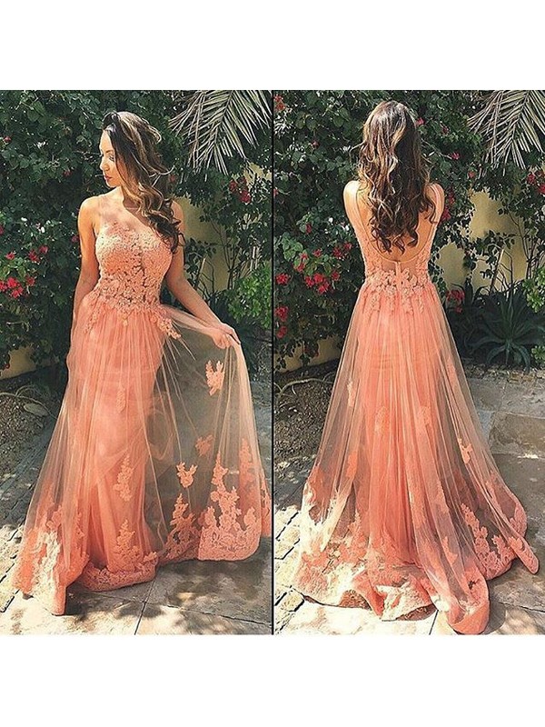 lace prom dress, long prom dress,peach prom dress, 2016 prom dress, custom prom dress, party dress, E42227
