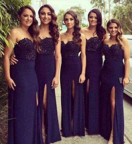 Long Bridesmaid Dress, navy Bridesmaid Dress, strapless Bridesmaid Dress, cheap bridesmaid dress, side slit Bridesmaid Dress, E1989