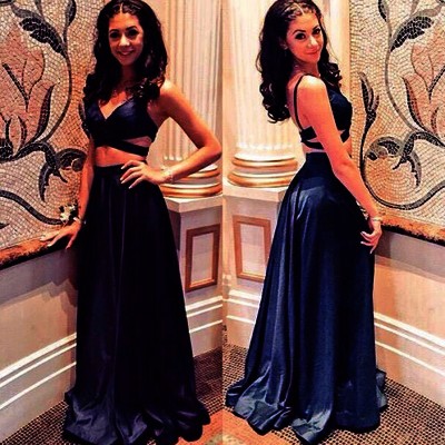 dark navy prom dress, two pieces prom dress, charming prom dress, 2016 popular prom dress, cheap prom dress, party dress gown, E2147