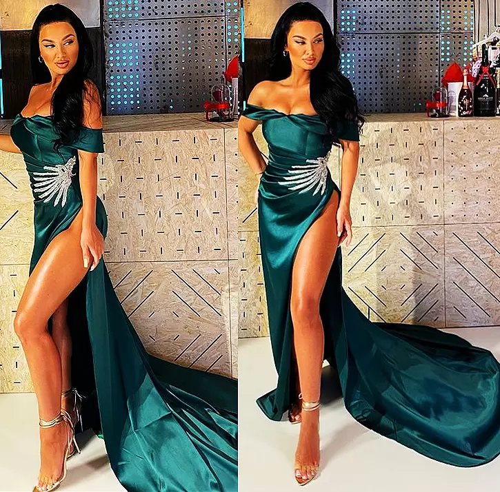 Hunter Green Sexy Prom Dresses Lace High Split Satin Evening Formal Party Dress Reception Bridesmaid Gowns Dress,PD22109