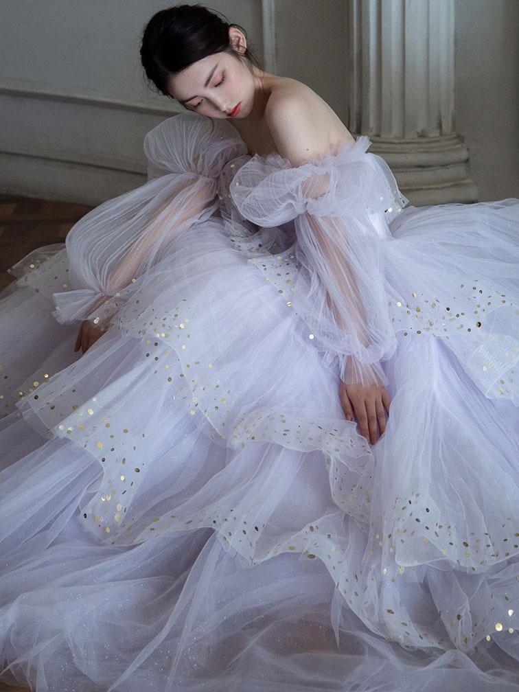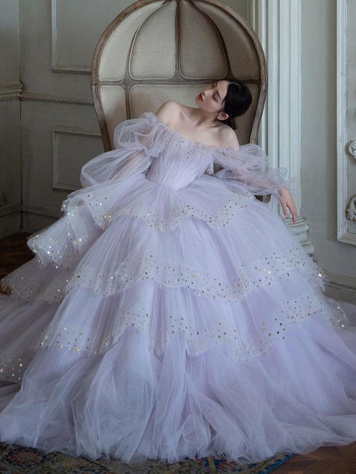 Light purple tulle long prom dress, purple tulle evening dress,PD22295