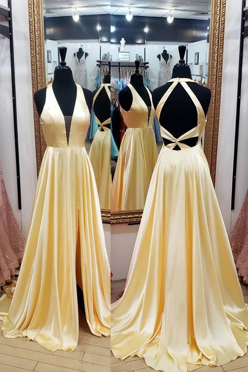 Simple yellow satin long prom dress yellow evening dress,PD221062
