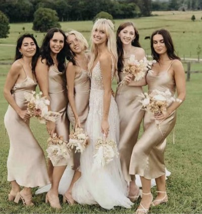Spaghetti Straps Ankle Length Champagne Bridesmaid Dresses,PD221568